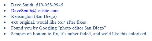 sending us digital images, the final results are freshened .jpg versions of the photo(s). From those, you