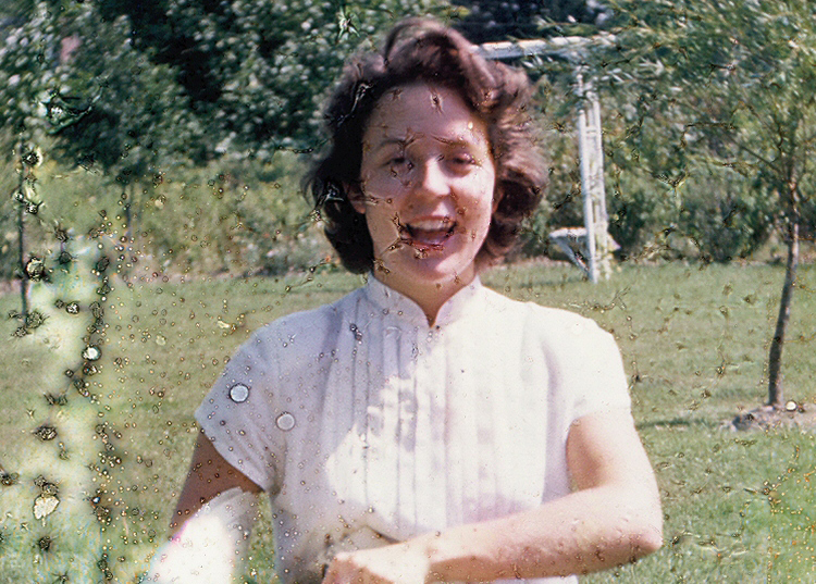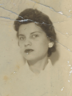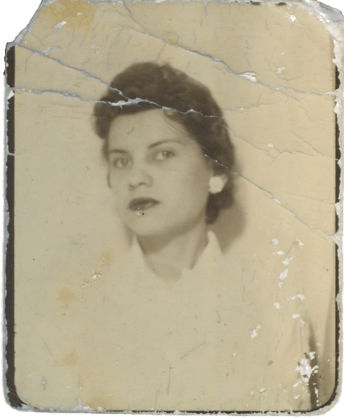 Client request: "Bring back to life this lovely, damaged shot of my Mom in the 1940s!"