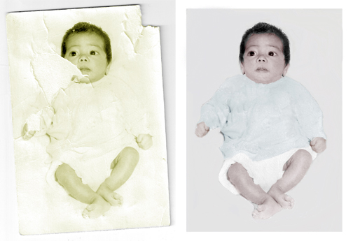 "I was able to give my mother an undamaged baby picture of myself. That's something I never thought I'd be able to do for her. This is one of only two existing shots of me from the Phillipines, both very damaged.